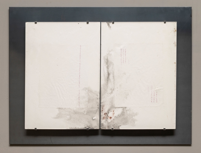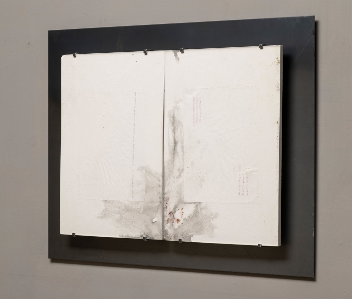 Inaudible i (plaster, steel, pigments, ink, pencil; 18.5 x 24.5 x 2)