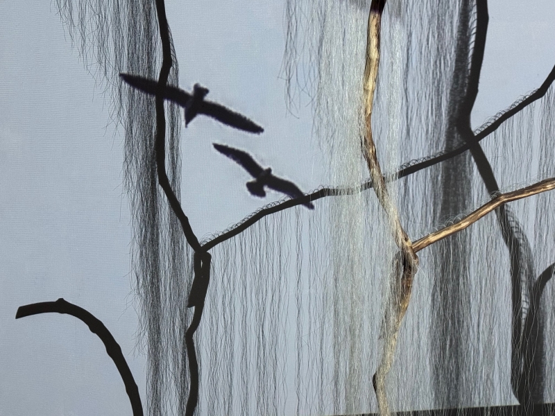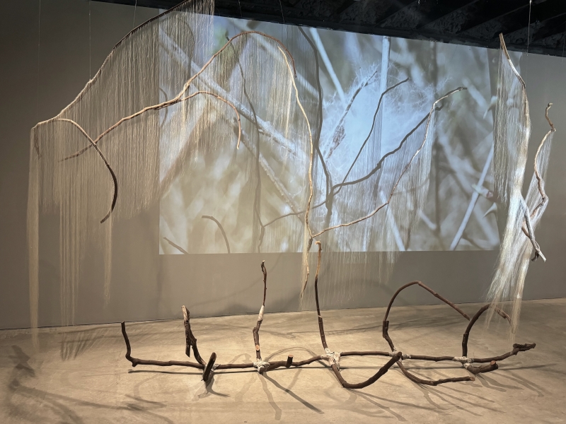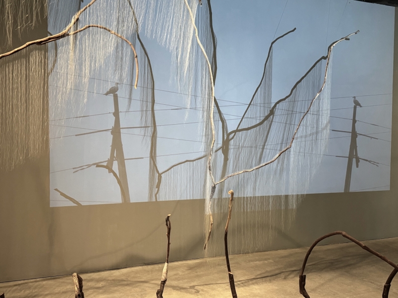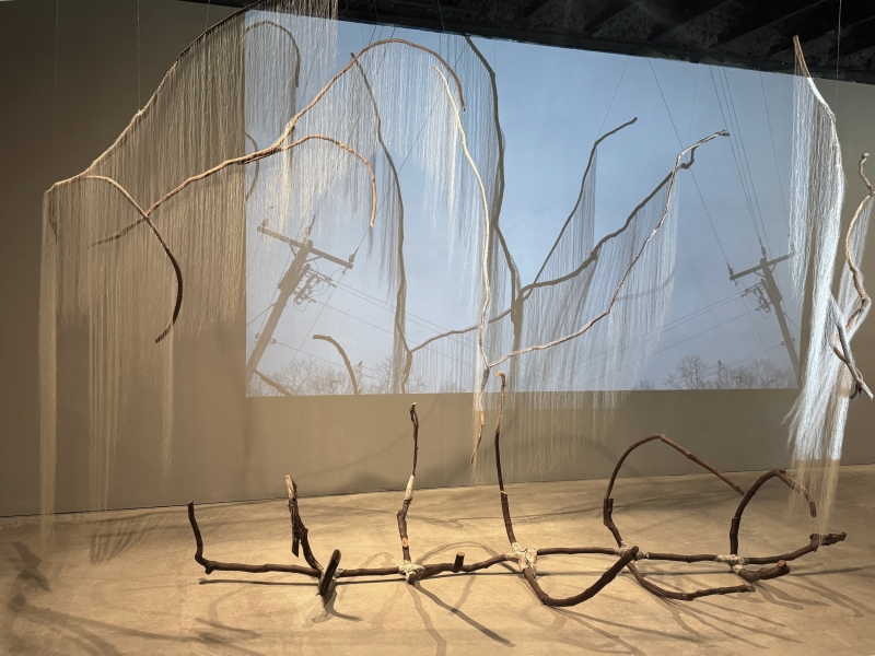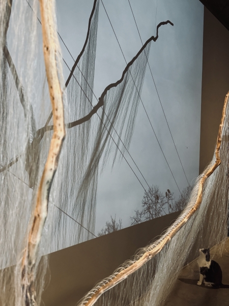 I made the video and audio field recording for the projections on the land where I live and the nearby Shawangunk Ridge in New York from winter into early summer in 2024. Gathering and editing the many hours of recordings was a revelatory rather than documentary process.